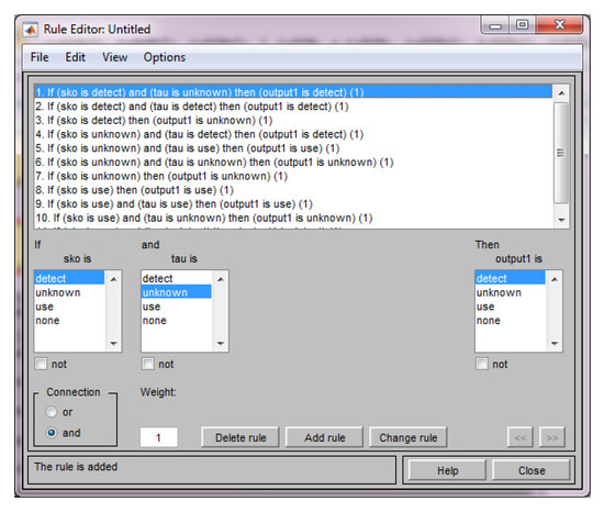 To make a decision in fuzzy logic, the rules were set (Figure 15).