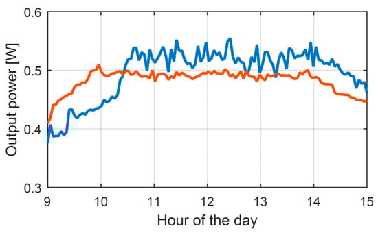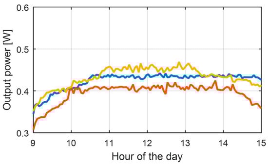 To verify its advantage for cooling, the PCM is compared to a heatsink. It is found that the PCM reaches an average temperature gradient of 33.1 K, while the heatsink only gets an average temperature gradient of 31.05 K. This represents an improvement of 2.05 K, which corresponds to an average of 106 mW more power. For the selected operating hours this produces about 424 mWh more or a gain of 14.37% in the total harvested energy.