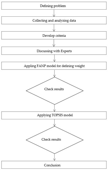The next part of this paper presents literature reviews to support the building of the MCDM model, methods of determining the parameters of the FANP model, and the TOPSIS model. Discussions and conclusions are presented at the end of the paper.