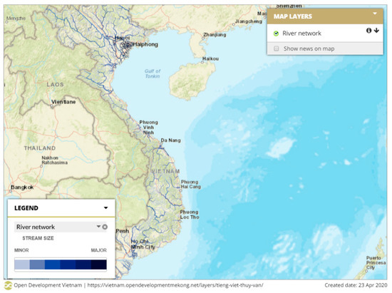 - OpenDevelopmentMekong. Vietnam River Network. Available online: https://vietnam.opendevelopmentmekong.net/layers/tieng-viet-thuy-van/ (accessed on 6 January 2020).