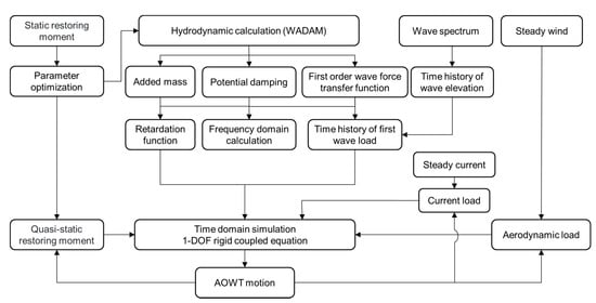 Based on the algorithms above, a coupled aero–hydro dynamic simulation tool for AWOT is developed in the time domain. The basic procedure of this coupled numerical simulation is shown in Figure 3.