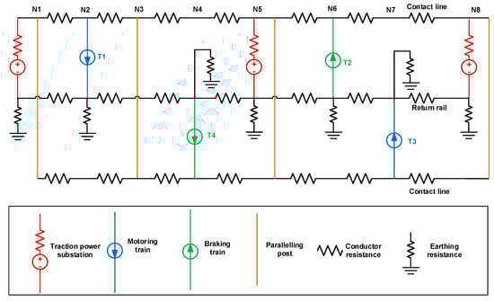 - Cai, Y.; Irving, M.; Case, S. Modelling and numerical solution of multibranched DC rail traction power systems. IEE Proc. Electr. Power Appl. 1995, 142, 323. [Google Scholar] [CrossRef]