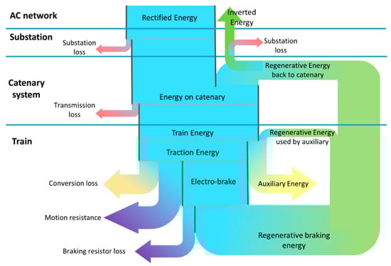 - Lin, S.; Huang, D.; Wang, A.; Huang, Y.; Zhao, L.; Luo, R.; Lu, G. Research on the Regeneration Braking Energy Feedback System of Urban Rail Transit. IEEE Trans. Veh. Technol. 2019, 68, 7329–7339. [Google Scholar] [CrossRef]