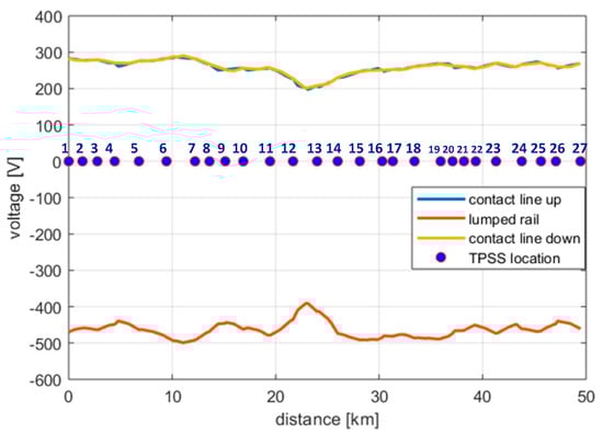 - Zhang, G.; Tian, Z.; Tricoli, P.; Hillmansen, S.; Liu, Z. A new hybrid simulation integrating transient-state and steady-state models for the analysis of reversible DC traction power systems. Int. J. Electr. Power Energy Syst. 2019, 109, 9–19. [Google Scholar] [CrossRef]