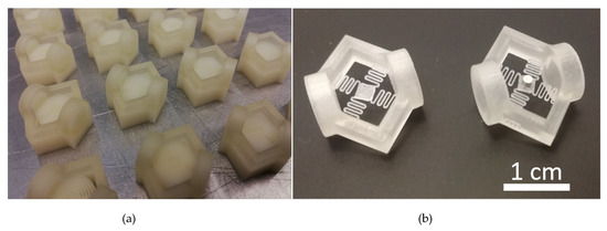 All the designed harvesters were successfully printed (Figure 3) and tested. The time required for designing and printing the harvesters was less than 4 h, which is much lower than the time that would have been taken using traditional micromachining methods.