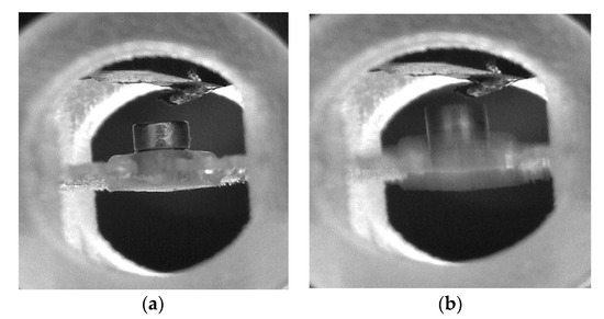 (a) Images captured by the video systems at steady state and (b) during the resonance vibrations with 1.32 mm amplitude.