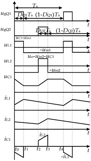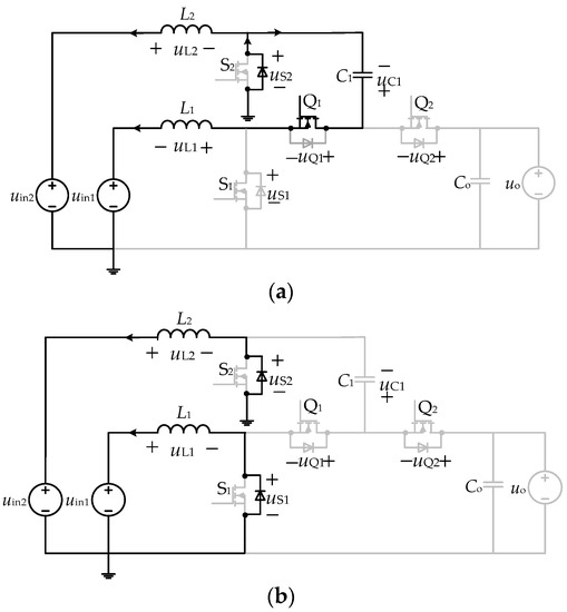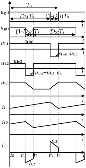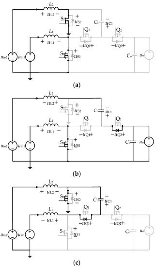 - The switches S1 and S2 are regulated by an interleaved control strategy with the duty cycle greater than 0.5. While the switches Q1 and Q2 are controlled by an interleaved control strategy with the duty cycle less than 0.5. The operation principle of the converter can be analyzed based on the discharging or charging modes.