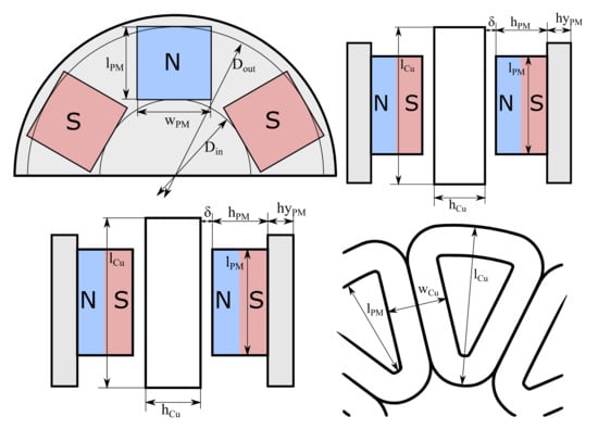 - Pyrhonen, J.; Jokinen, T.; Hrabovcova, V. Design of Rotating Electrical Machines; John Wiley & Sons, Inc.: Hoboken, NJ, USA, 2007. [Google Scholar]