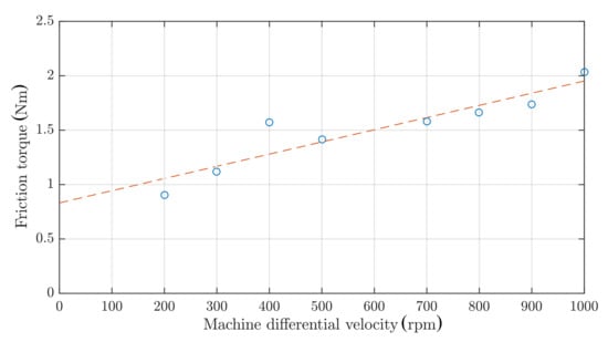 In order to compare the electromagnetic FEM simulations and measurements, mechanical losses had to be incorporated into the FEM results. The static and dynamic friction calculated based on the measurements in load and no load conditions for different relative rotational velocities torque has been added to the simulation. Figure 14 shows the friction torque in the function of differential speed.