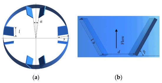 Vortex generators (VGs) are often used to control flow fields. This technique is mature in research on airfoils and heat transfer. Martin et al. [13] computed the spanwise distribution of bound circulation on a VG by integrating the pressure force along the VG height; they validated the hypothesis for predicting the vortex strength induced by a VG in wall-bounded flow. Zeng et al. [14] analyzed the combustion flow of different advanced vortices and found by numerical calculation that the performance of an advanced vortex combustor with the VG principle is significantly better than that without it.