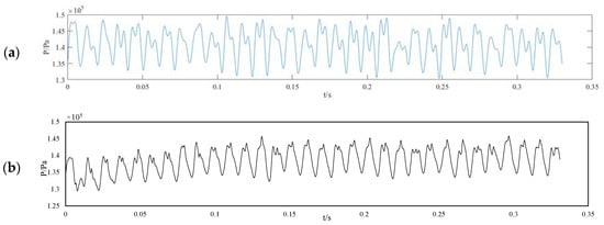 Time-domain diagram of pressure fluctuation: (a) Experiment; (b) Numerical simulation.