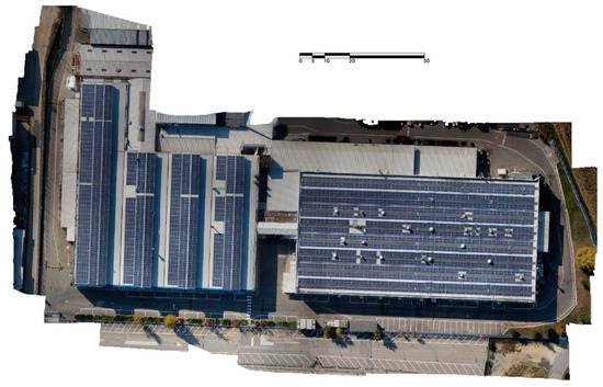Firstly, an orthophoto of the PV plant was needed, so the photos acquired by the digital camera have been processed with an MVS (Multi–View Stereo) software.