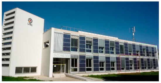 The present work is motivated mainly by the notable potential of development of a new BIPVT system for façades. Recent studies concerning solar innovative technologies for the Mediterranean climate may be found in [,,,]. Specifically for NZEBs, a detailed study concerning energy analysis may be found in []. As technology lowers the cost and increases the sophistication of data observation, management and modelling [], it is possible to obtain data not only from the practical representation of this information, but also to develop detailed energy simulations to characterize and describe the thermal behavior and energy usage of buildings considering different scenarios.