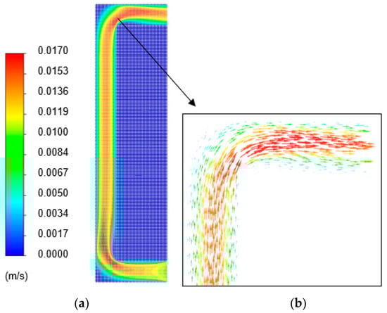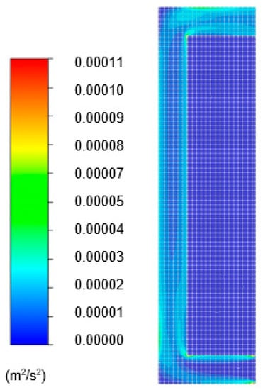 The energy model was considered activated. The turbulent viscosity was computed by combining k and ε, while the constants assumed the default values of C1ε = 1.44, C2ε = 1.92, C3ε = 0.09, σk = 1.0, and σε = 1.3. The standard k-ε model was used to perform the calculations in the software. The simplest “complete models’’ of turbulence are the two-equation models in which the solution of two separate transport equations allows the turbulent velocity and length scales to be independently determined. The pressure–velocity coupling used the coupled mode, whereas the influence of buoyancy force caused by the different densities due to the heating process was considered by inducting the Boussinesq approximation model (Boussinesq hypowork). This method uses a starting guess for pressure and velocity to solve the corresponding velocities via momentum equations, followed by introduced correction factors until convergence [].