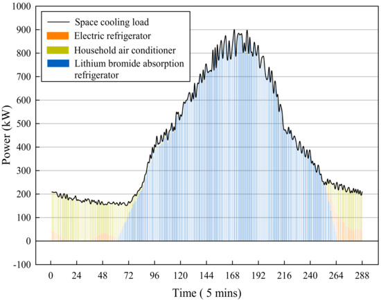 respectively, the day-ahead predicted value of the space cooling load and refrigeration load at time