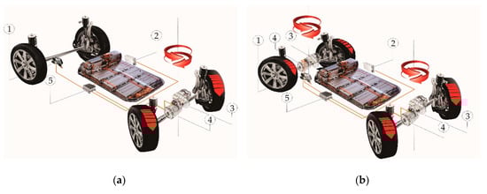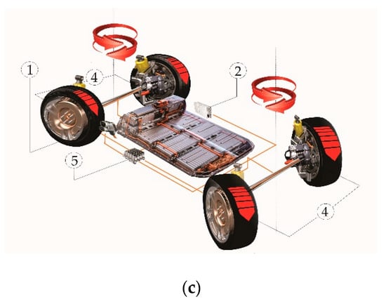 The traction motors generate torque to the propulsion wheels according to the control algorithm of the electrical machine via the electronics and, subsequently, to the voltage limitations generated by the battery management system (BMS). The electrical torque and power delivered to the wheels are directly controlled by the desired speed of the AV. The electric motors also function as electric generators in the recovery braking mode, where they can recover a maximum amount of braking energy (energy that will be stored in a battery via an electronic AC/DC converter and/or supercapacitor solutions). Another solution is to convert the kinetic recovered energy (when braking or downhill cruising) via the power source (AC/DC and DC/DC) to low voltage electrical consumers of the AV (