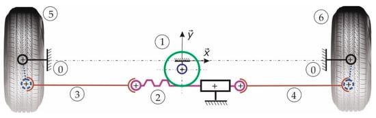 Figure 6 shows a kinematic diagram of the steering mechanism: (0) chassis; (1) steering gear driven by gear motor; (2) rack; (3) left link; (4) right link; (5) left wheel; (6) right wheel [