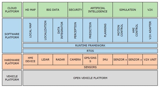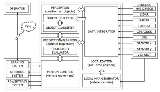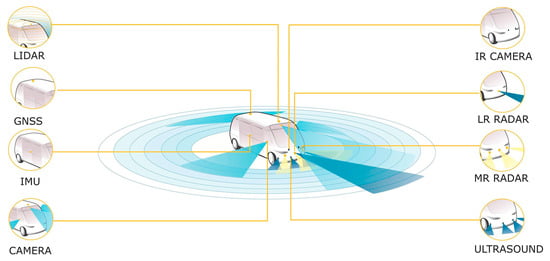 In recent years, autonomous driving has become not only a hypothetical driving solution but a reality. The type of physical vehicle used in the implementation of these concepts is similar to pre-existing solutions, with a steering wheel, acceleration, and braking paddles, but also including a complex network of sensors. Depending on the degree of automation, these classic control elements start to disappear and will disappear completely once the degree of automation reaches the 5th level. In parallel, new decision management solutions have started to emerge (such as tables and joysticks) based on the control of AVs in cases of emergency or impermissible situations. The complexity of direct mechanical control from the driver side will decrease, and the degree of automated control over the dynamic behavior of the vehicle will start to increase, until the driver has no control over the behavior of the vehicle, except by means of indicating the destination. This physical elimination process works in parallel with upgrading the level of autonomy. However, completely replacing a driver requires a series of upgrades in the sensor areas and processing power of autonomous driving control units. The technical aspects of each component’s role are presented in the following sections.