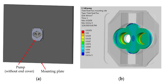 Figure 14a shows the CAD of the solid bodies used in the thermal analysis. The bodies include the mounting plate used to mount the reference EGM on the test rig during the experiments (details in