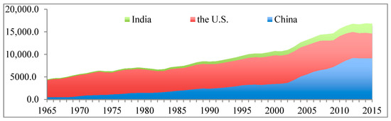 - Bosworth, B.; Collins, S.M. Accounting for Growth: Comparing China and India; NBER Working Paper No. 12943; National Bureau of Economic Research, Inc.: New York, NY, USA, 2007. [Google Scholar]