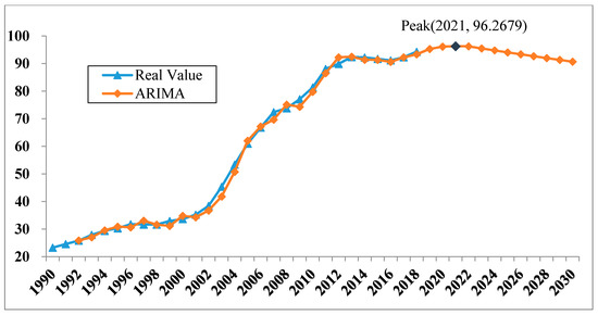 | Year | GM (1,1) | DGM | RDGM | ARIMA (1,2,4) |