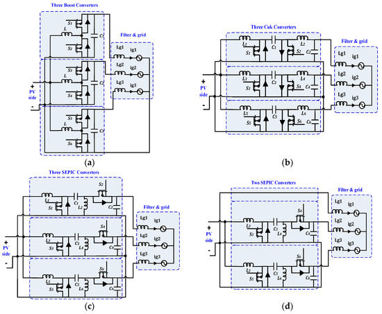 Moreover, different solutions for obtaining high voltage gain have been proposed using multi-input microinverters based on cascaded multi-level inverters, in which different PV modules are used to reach the required voltage level. The main issue for these systems is the complexity of the system structures and their control [61].