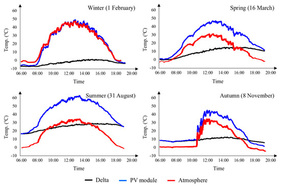Photovoltaic (PV) module temperature change according to seasonal temperature.