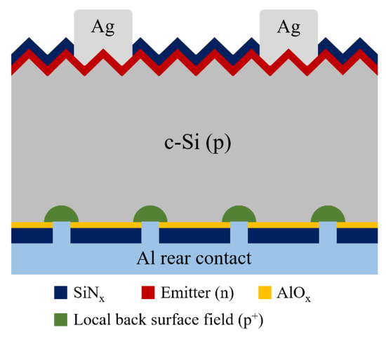 - Huang, H.; Lv, J.; Bao, Y.; Xuan, R.; Sun, S.; Sneck, S.; Li, S.; Modanese, C.; Savin, H.; Wang, A. 20.8% industrial PERC solar cell: ALD Al2O3 rear surface passivation, efficiency loss mechanisms analysis and roadmap to 24%. Sol. Energy Mater. Sol. Cells 2017, 161, 14–30. [Google Scholar] [CrossRef]