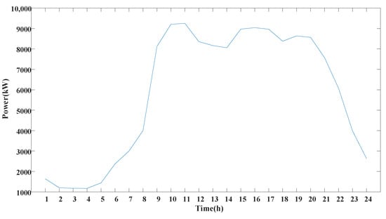 According to Figure 8 and previous study on the load characteristics of UC, the peak load regulation period will be 9:00–22:00, so the peak load of the UC lasts 13 hours a day. The scheduling cycle is divided into several regulation intervals on average. Therefore, the number of RI in the peak load hour is: