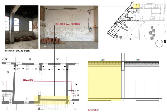 The room (700 m3) and the wall under-study are part of this complex and are located on the ground floor of an area that has not been refurbished yet, currently unoccupied and without any HVAC system (Figure 1 and Figure 2).