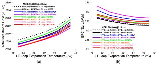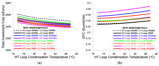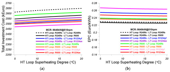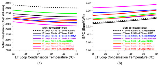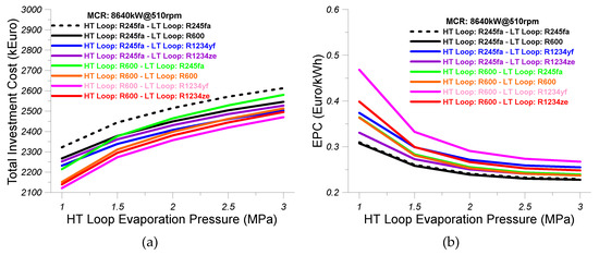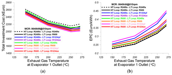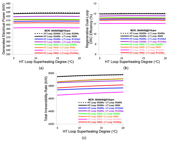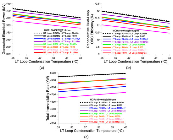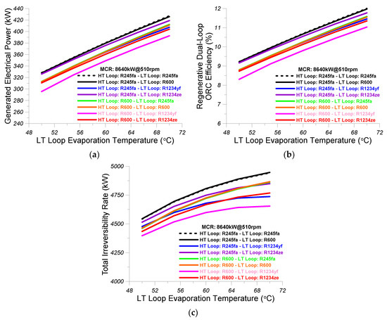 - The effectiveness of the LT loop intercooler was considered equal to 0.7, the effect of the preheater was considered equal to 0.5, and the effectiveness of the LT loop evaporator 2 was assumed equal to 0.5.