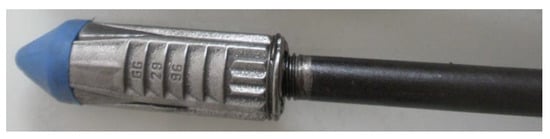 - Measuring cylinder, which is covered with metallic enamel. Load measurement is based on the observation of the enamel surface area loss from the measuring cylinder. The main advantage of this method is the rapid observation of changes in the sensor coating, but it should be stated that the assessment of the load by the person monitoring the condition of the bolt support is subjective [25];