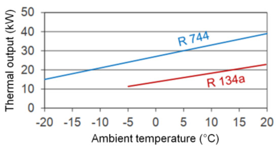 Comparison of the thermal outputs of heat pumps for bus heating using R134a vs. R744 as the refrigerant [37].