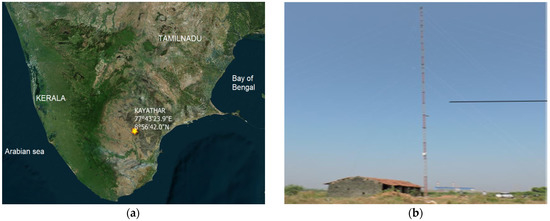 The Tamilnadu State, situated at the southeastern end of the Indian peninsula, comprises of a higher rate of humidity and temperature throughout the year. The annual rainfall received from the South–West monsoon (June to September) and the North–East monsoon (October to December) is 911.6 mm and temperature ranges between 20 °C and 38 °C in the plains [28]. Kayathar is a small town located in the southern part of the Tamilnadu. The mapping coordinates of Kayathar are 08°57′ N 77°48′ E and it is situated at 78 m elevation (altitude) above sea level. The geolocation of the targeted site is shown in Figure 1a. The wind data collected from the mast installed at a height of 120 m by the National Institute of Wind Energy (NIWE) (the central agency for wind energy developments in India). Wind data measured at Kayathar were recorded with an average of 10 min along with different altitudes, directions of wind flow, temperature, and pressure for three years between the years 2014 and 2016. This region experiences a template of monsoon variations from South–West and North–East monsoons. Therefore, the summer season is very hot with high humidity, and hence this site is prone to high windy during monsoons. The wind data collected from this site is classified into three categories likely seasonal, yearly, and monthly to evaluate the wind characteristics [29].