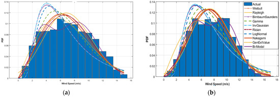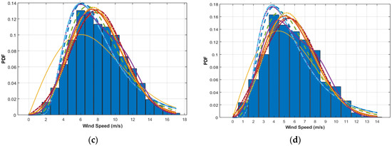 Several research studies on wind resource assessment are carried out by relating numerous probability density functions (PDF) to identify the most effectual fitting measurement. Predominantly, Weibull and Rayleigh are the top distributions methods used in most research works. Notably, the Weibull method is incorporated in the commercially available wind analysis software. Don et al. [10] related various approaches of Weibull parameters estimation in fitting with Jeju Island, South Korea using moment and energy pattern method. Moreover, Pobočíková et al. [11] have assessed the appropriateness of distributions of two and three parameter Weibull, gamma, and lognormal in fitting the wind speed distribution in Slovakia and described the usefulness of three-parameter Weibull (best distribution method). Additionally, Yilmaz and Heçeli [12] compared the effectiveness of ten PDFs namely, Erlang, beta, exponential, log-logistic, lognormal, gamma, Pearson V, Pearson VI, Weibull, and uniform. Wherein, Weibull claimed its potential to be the best one to fit the wind speed distribution in the Aegean region in Turkey. Moreover, Paula-Andrea et al. [13] performed the analysis with Weibull, Rayleigh, gamma, and lognormal and goodness of fitness with R2 (correlation coefficient), RMSE (root mean square error), KS (Kolmogorov–Smirnov), index of agreements (Index-A) and wind power density (WPD) fit error methods to attain the best fit. Additionally, Hayriye et al. analyzed the performance of Weibull, lognormal, and gamma using five-year data and concluded that gamma was a good fit. Further, Mohammad at el. [14] evaluated ten wind speed distributions in eight selected locations with vertical axis turbines in low wind speed area in Cyprus and determined that the GEV (generalized extreme value) performed better compared with other distribution methods.
