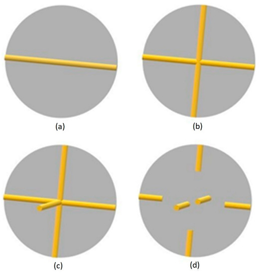Spherical capsules with: (a) two circular pin-fins, (b) four circular pin-fins, (c) six circular pin-fins, (d) six circular pin-fins with reduced length to radius ratio [109].