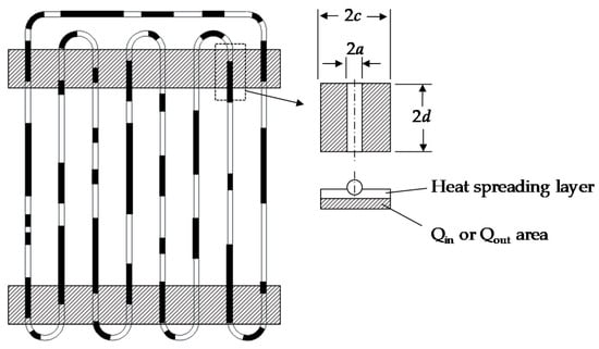The conventional PHP has a structural limitation in the radius of curvature, and such a limitation causes the minimum distance between adjacent straight pipes to be about 2.5 Do. For uniform area heat source, the heat spreading model can be simplified to the finite isotropic rectangular flux channel mode as shown in Figure 3. The heat-spreading resistance can be calculated by [19].