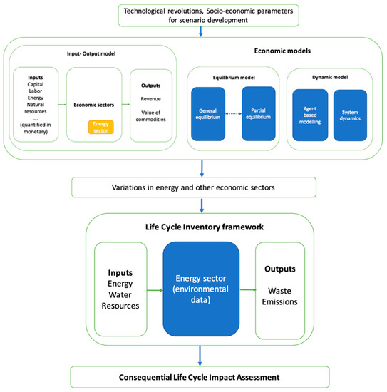 Economic models and Life cycle assessment (LCA) for consequential LCA (adapted from [38]).