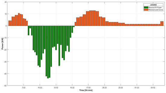 Figure 18 presents the load curve before and after the energy introduced by the PV plant has been used.
