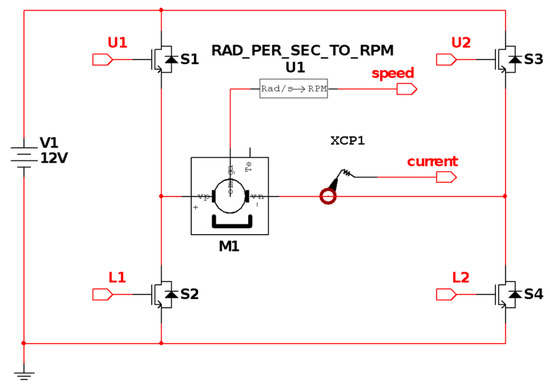 As a result, this paper also shows the co-simulation results between LabVIEW and Multisim (see Figure 1) to validate the proposed controller as a previous step for implementing the robust controller in a real target. This co-simulation runs the control system into LabVIEW and the power electronic stage and the DC motor in Multisim, as shown in Figure 2. The power electronics stage includes the DC motor and power semiconductors that can also be modeled for approaching the experimental ones. Nevertheless, the real DC motor used in the implementation has a gearbox that is a complex system to be completely simulated, because it has several nonlinearities conditions, so only a partial description of it is done under the co-simulation developed in this paper [46]. The co-simulation and the experimental tests were conducted while using the Per Unit system (P.U.).