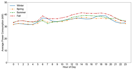 Daily load profile of the convenience store across different seasons.