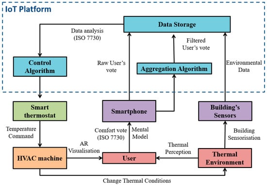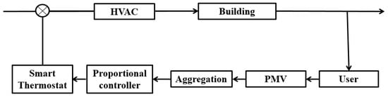 Diagram of the control system based on crowd-sensing with the predicted mean vote (PMV).