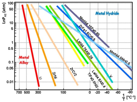 - Domschke, T.; Nietsch, T.; Schütt, E. The temperature-dependence of hydrogen sorption in metal hydrides. Int. J. Hydrogen Energy 1991, 16, 255–263. [Google Scholar] [CrossRef]