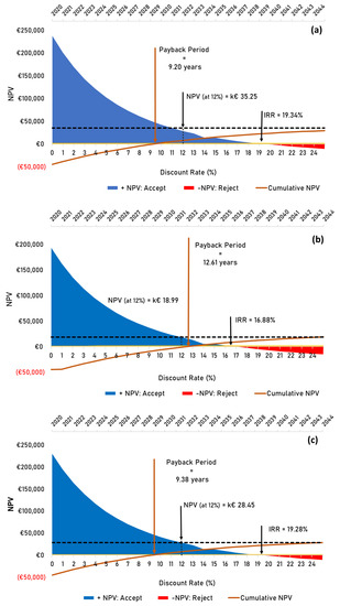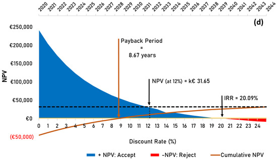 Cash flows after taxes along the project lifetime are applied to a spreadsheet-based economic model developed to calculate the net present value (NPV), internal rate of return (IRR) and the payback period (PBP).