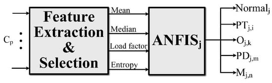 The architecture of the ANFIS network is shown in Figure 1. Consist of five layers, the fuzzy layer, the product layer, the normalized layer, the defuzzification layer and the summation layer, where the output of each layer is denoted as , where L = 1, 2, …, 5 [30]: