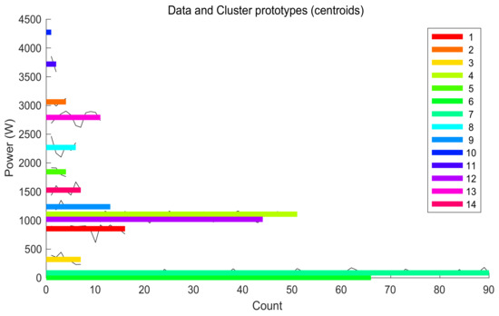 By doing clustering analysis, we can obtain the “standard” levels of power of a given household. As depicted in Figure 12 there are many standard levels that appear a significant number of times. The application of clustering techniques at this point helps to detect power levels without the hassle of small power changes due to the normal operation of any electrical machine.