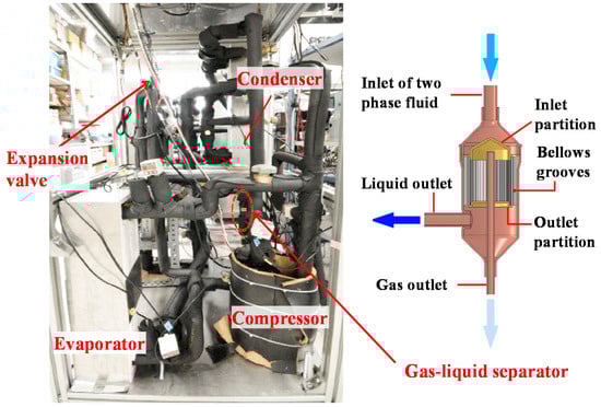 The above-mentioned single-stage refrigerant injection systems mostly concern the heating or cooling performance of a vapor or liquid injection system with a flash tank and accumulator together. Fewer studies have investigated the performance of a single-stage vapor injection heat pump with only a gas–liquid separator, especially when the system is operated under different primary temperatures and compressor frequencies. In this study, a single-stage heat pump with vapor injection has been developed by installing a small sized surface tension type gas–liquid separator instead of a flash tank to separate the vapor and liquid refrigerants. The vapor separated by the gas–liquid separator is injected to the inlet of the single-stage compressor. The performance of the developed vapor injection heat pump was investigated in order to understand the heating performance of the vapor injection heat pump under different compressor frequencies and primary temperatures.