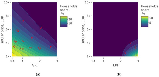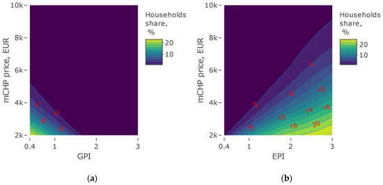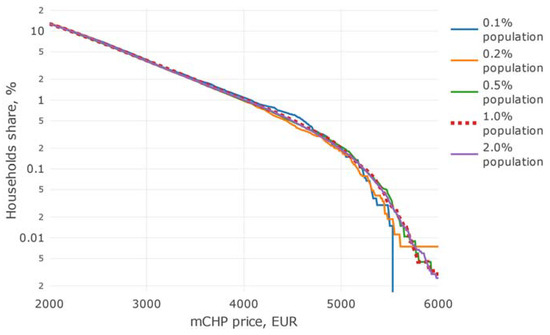 The analysis adopted the method involving the construction of an energy balance and cash flow model for a heat and electricity source in a hypothetical household. In the Monte Carlo simulation process, the values of technical parameters are drawn from the probability density distributions describing the structure of these parameters for the household population in Poland. A set of randomly selected data in one iteration characterized a single household. For each simulation 134,325 data sets characterizing a sample of 134,325 hypothetical households in Poland were drawn. Simulations were made for different variants of fuel (gas) and electricity prices. The proposed approach to analysis was successfully used to assess the potential of passenger car technology for compressed natural gas [49] and assessment of the potential for reducing pollutant emissions and improving energy efficiency in the household sector in Poland [50]. In addition, the potential of micro cogeneration installations for a single case—a building located in an area with high air pollution in Poland—was analyzed [51].