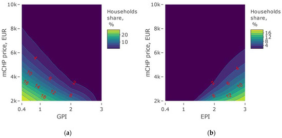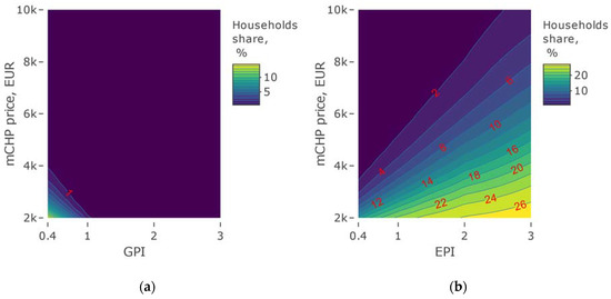 - The economic efficiency calculation was performed on a monthly basis for the entire life cycle of micro-CHP boilers and gas-fired boilers, which was the same for both technologies for 15 years;