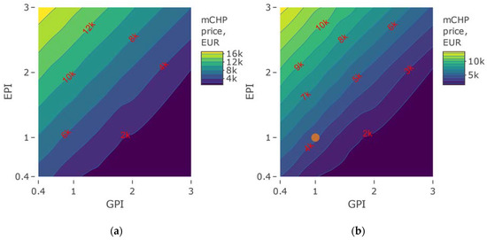The results in the form of map charts for constant or variable values Electricity Price Index (EPI) and Gas Price Index (GPI). EPI and GPI were determined on the basis of the following relationships: